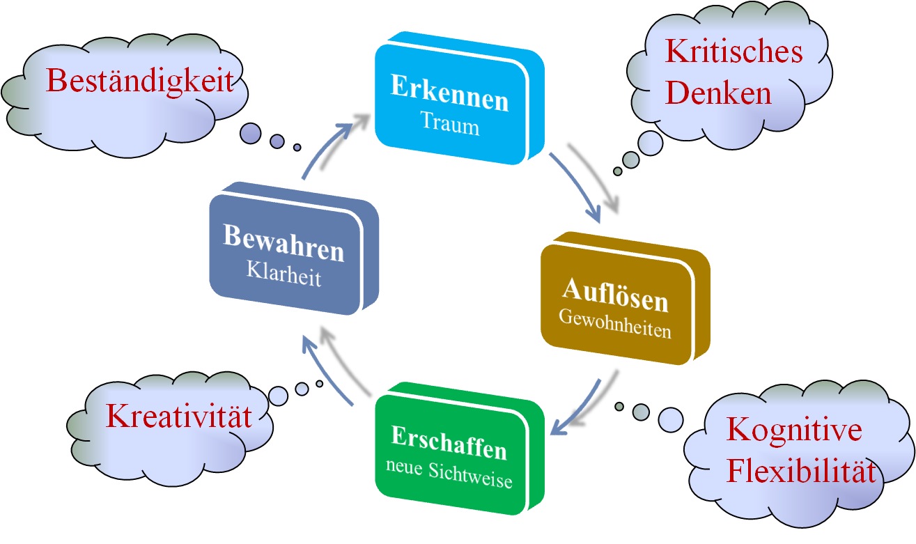 Das, was mittels kognitiver Flexibilität aufgespannt, dynamisiert und ausgelotet wird, dient als Grundlage für die Kreativität.