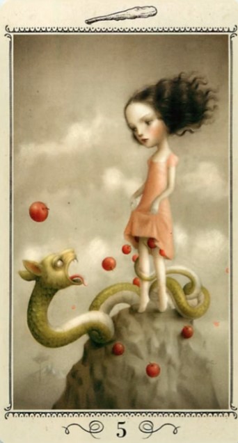 Begrenzung und Disziplin (Saturn) trifft auf Stolz und Selbstsicherheit (Löwe). Bei den fünf der Stäben zeigt sich Disziplin in der Selbstsicherheit, weshalb die Karte ja auch häufig mit dem Thema Konflikt oder Wettbewerb assoziiert wird. Hier geht es nicht wirklich darum, andere niederzubringen, sondern es geht um eine gesunde Auseinandersetzung, in welcher jeder Beteiligte Konturen annehmen darf und muss, um sich spielerisch zu behaupten. Schattig wird es, wenn Überheblichkeit oder Arroganz hineinspielen: Wo will ich andere vielleicht doch übervorteilen und werde womöglich missgünstig? Wo habe ich aus Spiel "Ernst" gemacht und dabei das Spiel sabotiert?