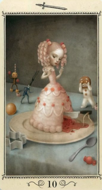 Beginnen wir also. Um ein Beispiel zu geben, habe ich selbst mal ein paar Karten herausgesucht, die ich ganz interessant finde und werde das mögliche Schattenthema kurz umreißen. Zur Deutung werde ich hier ausnahmsweise mal auf die Dekaden vorgreifen (dazu werde ich demnächst noch einen eigenen Beitrag verfassen):