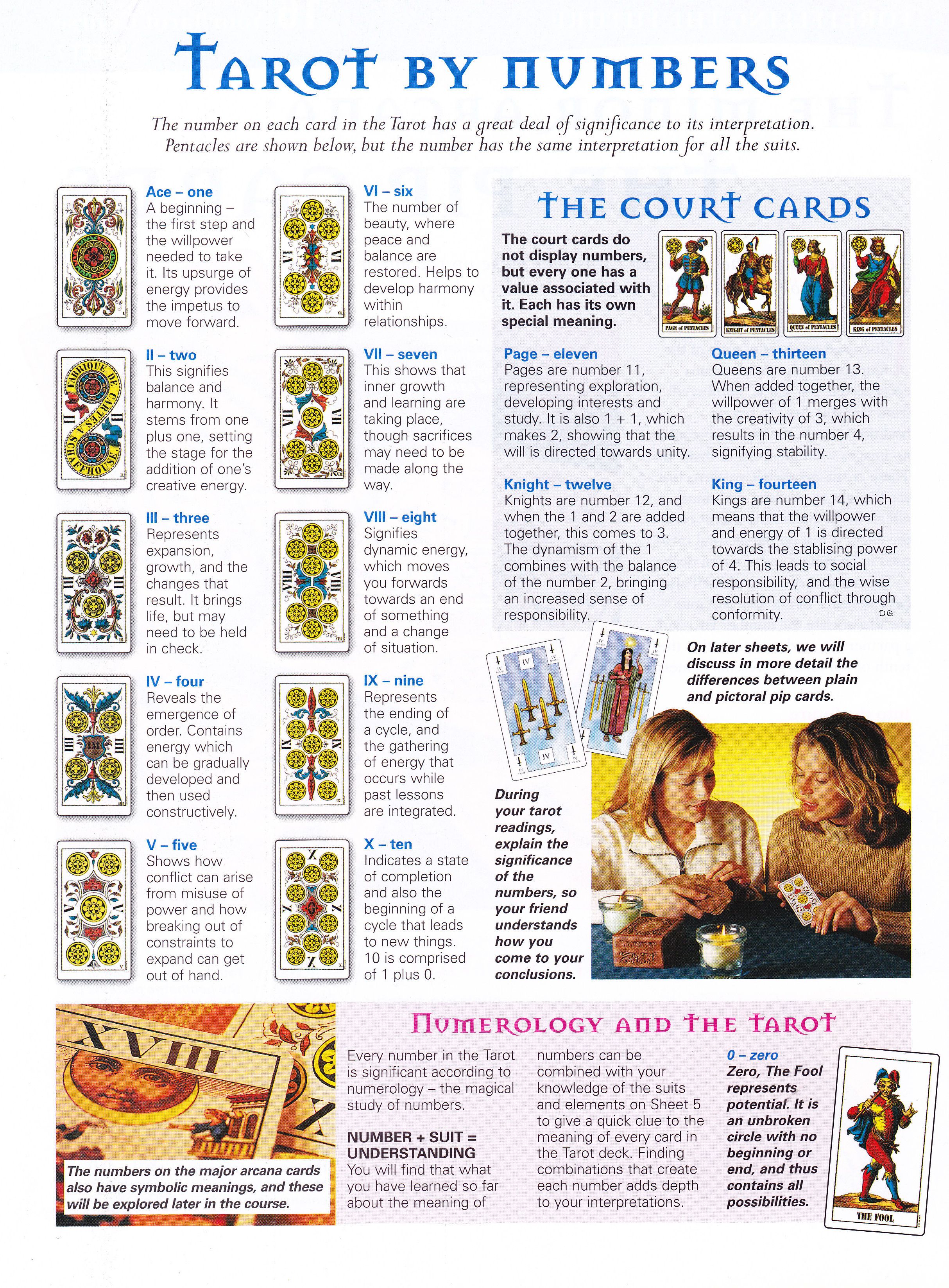 Der Grund liegt tatsächlich auf der Hand. Da die großen Arkana übergreifende Lebensprinzipien beschreiben, würde man sich hierin schnell verlieren. Ähnlich verhält es sich bei den Assen, die ein wenig "alles und nichts" widerspiegeln. Hofkarten sind ebenfalls eher irritierend beim Erkunden und Ausleuchten von Schatten, da sie im wahrsten Sinne zu "personifiziert" daherkommen. Es bleiben die Zahlenkarten von 2 bis 10. In den Zahlenkarten finden sich alltägliche Situationen abgebildet und damit verbundene Themenaspekte. Wir erinnern uns an den Lebensbaum und dessen zehn Sphären in welchen die Zahlenkarten "zuhause" sind. 1 entspricht der Krone (Kether), alles und nichts. Erst ab Sphäre 2 beginnt mit der Dualität die Dynamik des alltäglichen und greifbaren Lebens. Hier wird es interessant.