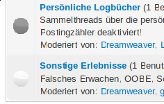 Achso, und: Die Icons, die Aktivität in Foren auf der Hauptseite anzeigen, sind bei mir hässlich – also vor allem viel zu groß (ich nehme an, die sollen gleich den Akitvitätsicons für Benutzer sein). Ist das auch ein Darstellungsfehler oder sind die nur einfach so hässlich?