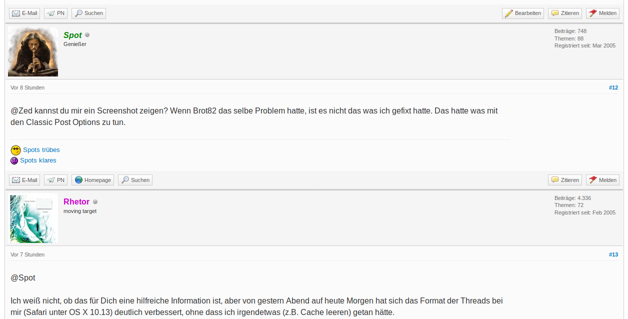 Ich weiß nicht, ob das für Dich eine hilfreiche Information ist, aber von gestern Abend auf heute Morgen hat sich das Format der Threads bei mir (Safari unter OS X 10.13) deutlich verbessert, ohne dass ich irgendetwas (z.B. Cache leeren) getan hätte.
