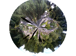 den effekt kann man im grafikprogramm mit dem filter "polarkoordinaten" erzielen. in der mitte steht man selber und am rand is praktisch der horizont. problem gelöst!