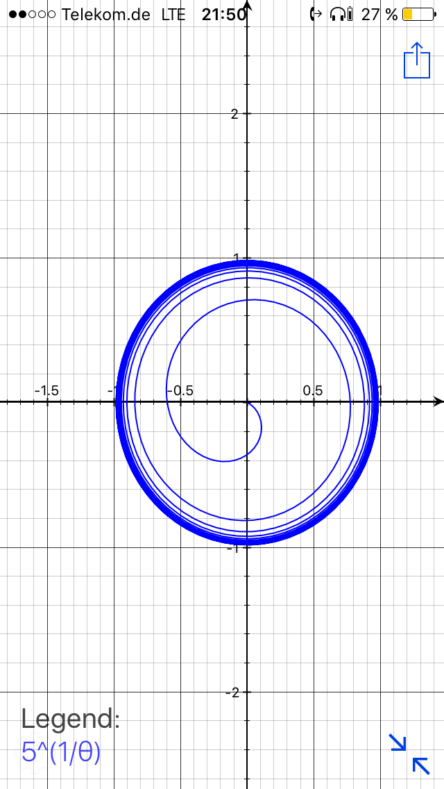 Vor nicht all zu langer Zeit sah ich im Traum eine Spirale, die ich nach dem Erwachen dieses Traumes nicht mehr ganz verstehe. Es war eine Spirale, die nach innen nicht kleiner, sondern immer größer bis ins Unendliche wuchs und außen sich auf einem Wert einpendelte und immer mehr einem Kreis ähnelte. Im Traum war ich begeistert und ich hatte irgendwie auch schon eine mathematische Bildungsvorschrift, an die ich mich nicht genau erinnere.