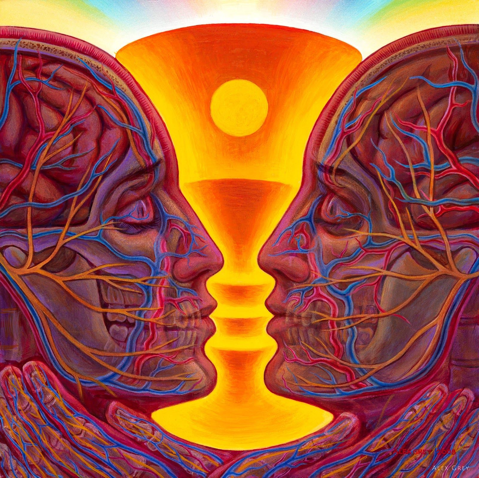 Alex Grey hat das Thema hier mal wieder so wunderbar visuell herausgearbeitet. Ich glaube wir finden den heiligen Gral wenn wir alle Menschen annehmen können. Ich arbeite täglich daran, das Licht welches aus jemandem Menschen strahlt, zu sehen.